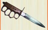 Клинок прямой однолезвийный, боевой конец двулезвийный, на обухе пила по дереву. Слева на пяте приемные клейма и клеймо фирмы «Wilkinson». Справа на пяте приемные клейма. Эфес латунный, состоит из гарды и рукояти. Гарда состоит из «В»-образной защитной дужки и крестовины, конец которой загнут вниз и закруглен. В верхней части защитной дужки сквозное отверстие овальной формы. Рукоять с поперечными бороздками соединена с хвостовиком 4 заклепками. Ножны отсутствуют.